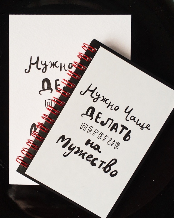 Блокнот - леттеринг: «Нужно чаще делать перерыв на мужество.» Леттеринг иллюстратора Анны Куварзиной @treesforanya. Возможна комплектация с аналогичной открыткой и имбирным пряником. Выбирайте в разделах нашего интернет - магазина Открытки или #пряникисмысли. |