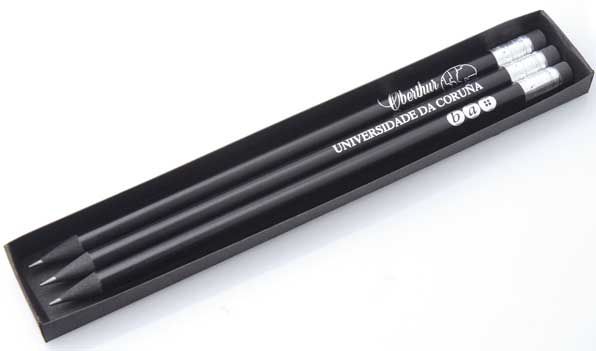 Набор состоит из 3 чернографитовых карандашей с ластиком. Корпус карандашей сделан из натурального дерева канадского клёна с черной пропиткой, за счет чего они смотрятся особенно изысканно. Для наилучшего результата рекомендуем печать логотипа или текста серебристой краской, которая будет гармонировать с черным фоном. |