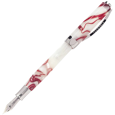 Перьевая ручка коллекции Opera Club. Цвет: Вишневый сок (Cherry Juice). Перо М – золото 14 ct. Корпус ручки выполнен из смолы молочного цвета с волнообразными вишневыми узорами. Детали изготовлены из родия. Подарочная коробка