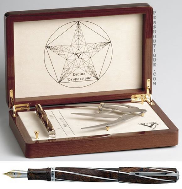Набор «Золотое сечение»: перьевая ручка и реплика инструмента Леонардо да Винчи, при помощи которого он изобрел термин Золотое сечение.