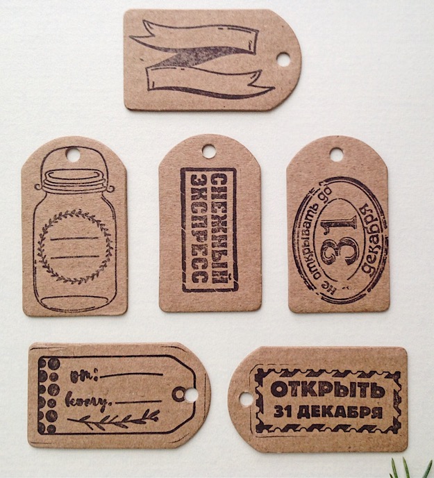 Новогодние крафтбирочки, картон, 6 х 3,5 см, с надписями, в ассортименте