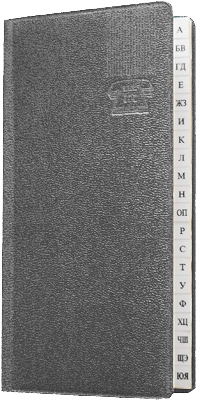 Адресная книжка контактов с русскими регистрами и гладкой твердой обложкой.